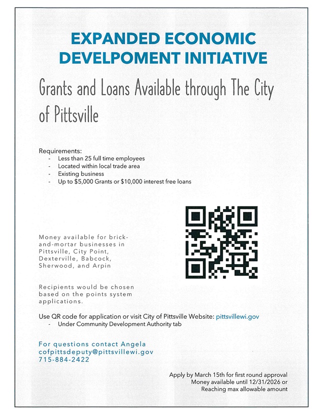 Grants and loans available through the City of Pittsville